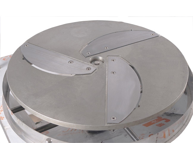 正常工(gōng)作(zuò)前先試切,觀察所切蔬菜規格與要求是否一緻,否則應調節(或更換)刀(dāo)片與轉盤的高度,調整無誤後進行正常工(gōng)作(zuò)。切片的厚度由片刀(dāo)與轉盤的間隙來決定,通過調整片刀(dāo)來實現尺寸變化。